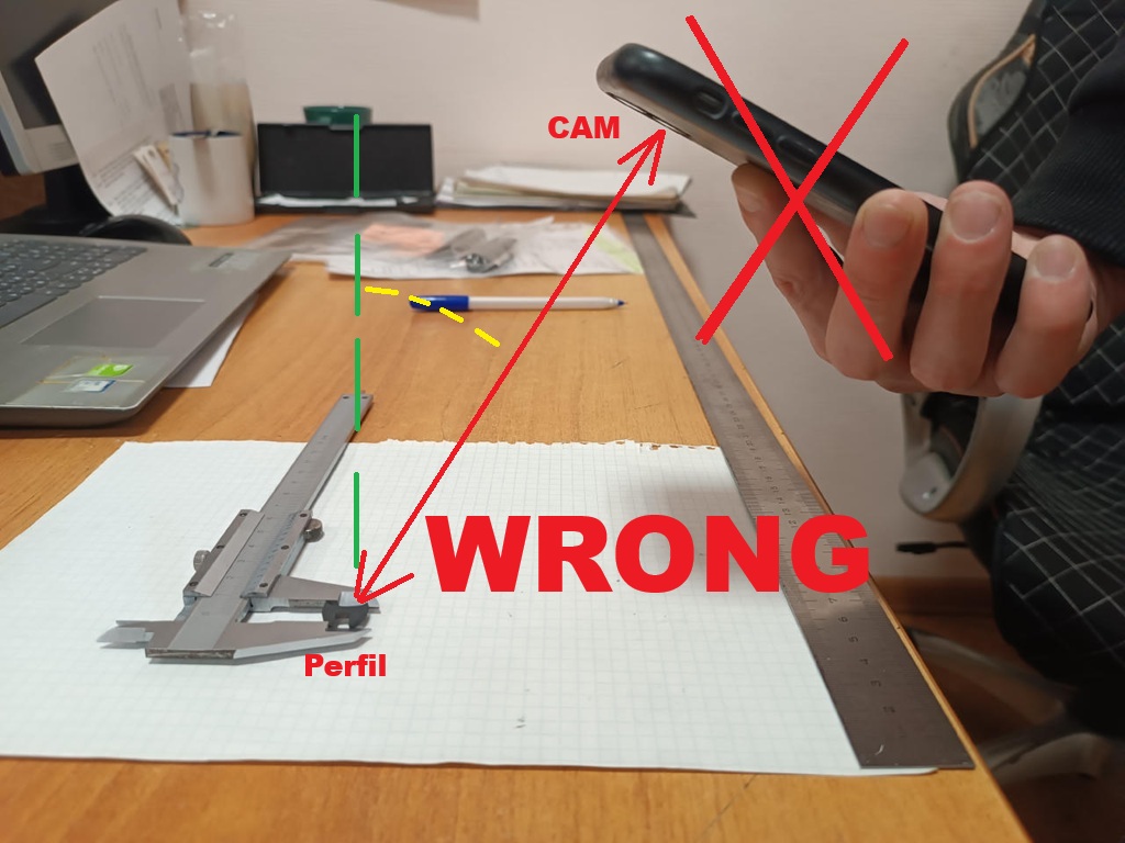 Si la foto se toma en ángulo, se producirá un error geométrico al digitalizar y las dimensiones finales no serán exactas.
